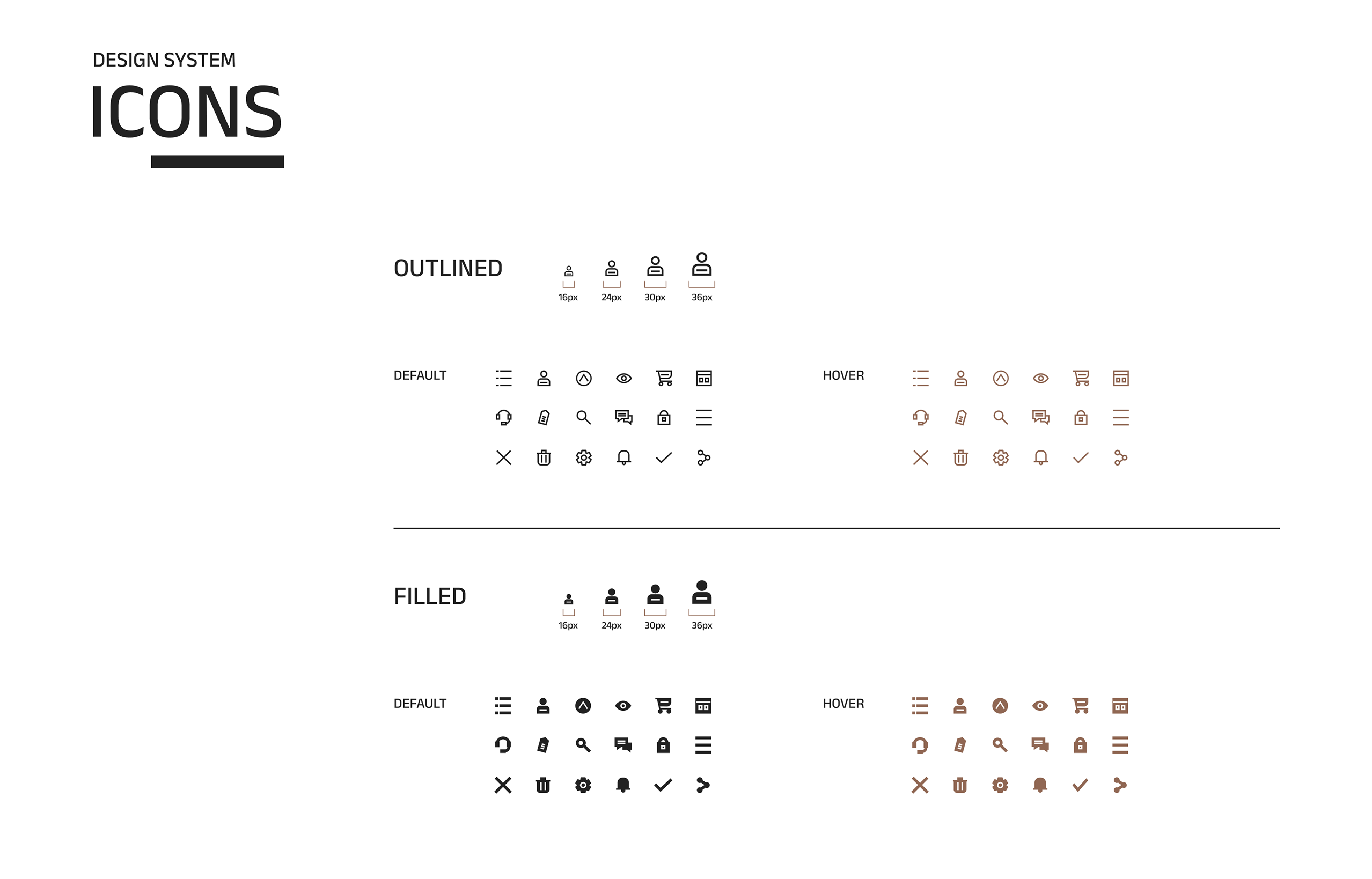 Icons were designed from scratch. They were given four sizes behaviors, and two main versions (Outlined and Filled).
