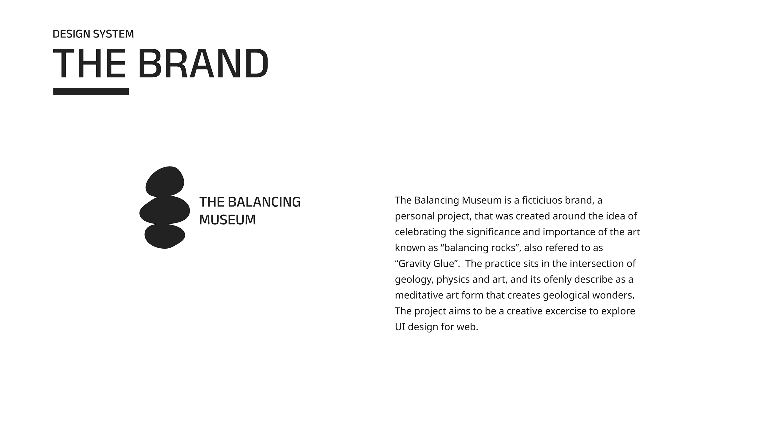 The design system process started by creating the ficticious brand, its purpose and visual design associated with it. The brand is called “The Balancing Museum”.